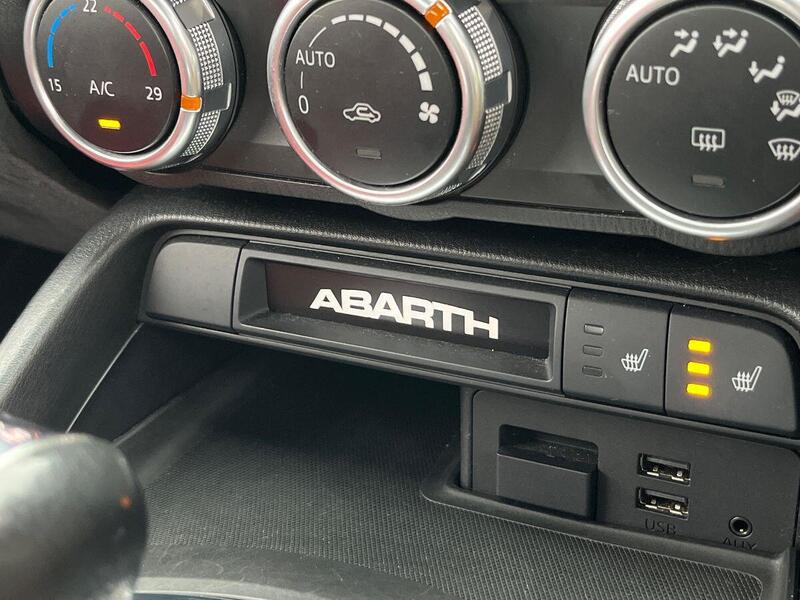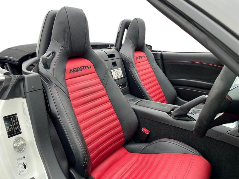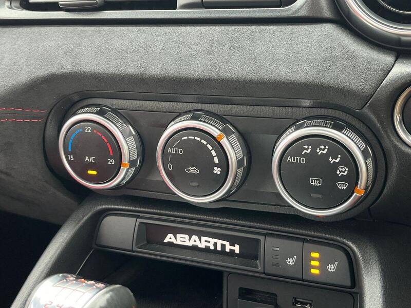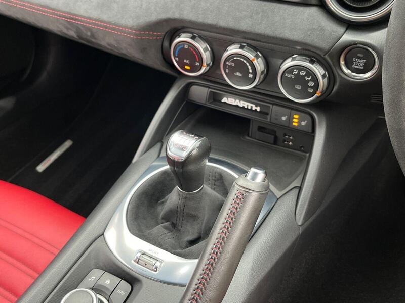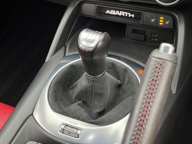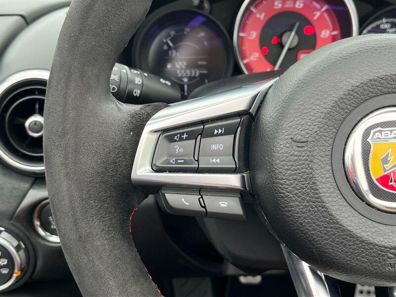 12V Power Outlet, 17in Alloy Wheels - Corsa, 2 USB and 1 AUX Ports, 7in Touchscreen with Multimedia Control, A-Pillar and Roll Bar in Forgiato Grey, ABS - Anti-Lock Braking System, Abarth Mechanical Limited Slip Differential, Abarth Record Monza Exhaust System, Active Head Restraints, Active Pedestrian Protection, Adjustable Drivers and Passengers Seats, Aerodynamic Abarth Kit, Aha by Harman and Stitcher Internet Radio Apps Internet Wi-Fi, Air Conditioning, Airbags - Driver, Airbags - Front Side, Airbags - Passenger, Alcantara Wrapped Instrument Cluster Hood, Alcantara Wrapped Instrument Panel Bezel, Aluminium Racing Pedals, Bi-Function Halogen Projector Headlights, Black Convertible Roof with Acoustic Headliner, Black Side Skirts, Bluetooth, Child Seat Anchor System Latch Ready, Cruise Control, Daytime Running Lights, Digital Audio Broadcast - DAB, Dimpled Leather Bound Gear Knob, ESP - Electronic Stability Programme, Electric Power Steering, Fix&Go Kit, Floor Mats - Front, Front Fog Lights, Front Passenger Seat Belt Alert, Headlight Levelling System, Headlight Off Time Delay, Heated Front Seats, Illuminated Entry, Immobiliser, Keyless Go Push Button Start, LED Rear Lights, Manual Rearview Mirror, Matt Black Instrument Panel Bezel, Motorized Pretensioning Seatbelts, Occupant Detection System, Passenger Airbag On-Off Switch, Passenger Side Sun Visor with Mirror, Performance Steering Wheel, Power Heated Mirrors, Power Windows, Premium Security Alarm, Radio AM-FM - MP3 Player, Rear Fog Lights, Remote Control Key Fob, Side Repeater Lens, Soft Top with Inner Liner Soundproofing, Soft Touch Instrument Panel Surround, Speakers x4, Sport Instrument Cluster, Sport Mode, Sport Suspension Abarth by Bilstein, Steering Wheel - Audio Controls, Tilt Steering Column, Trip Computer, Tyre Pressure Monitor System, Variable Intermittent Windshield Wipers, Leather - Red/Black