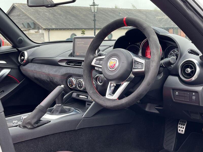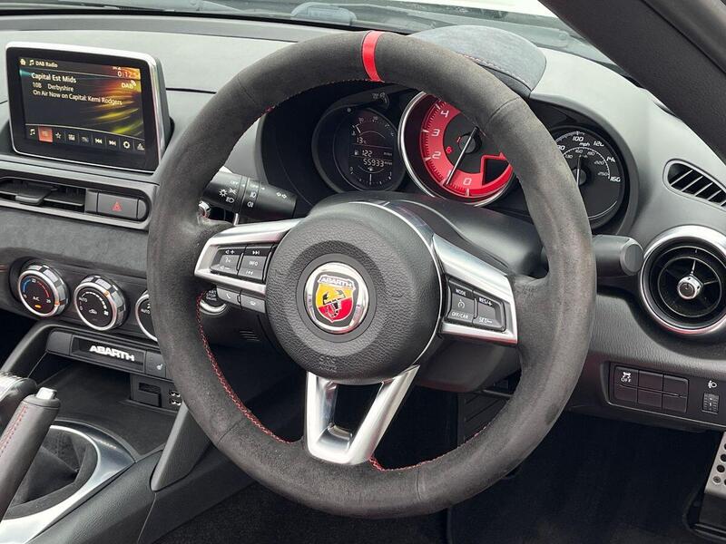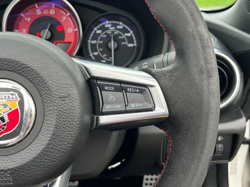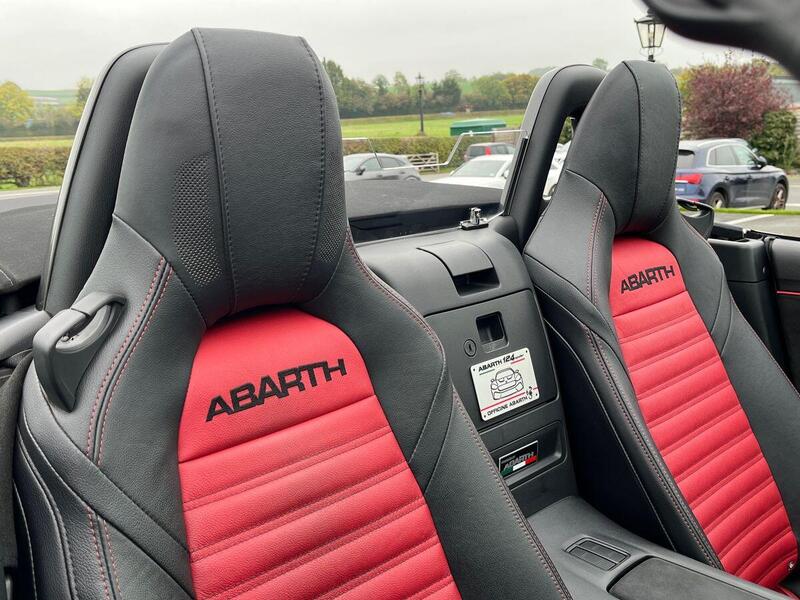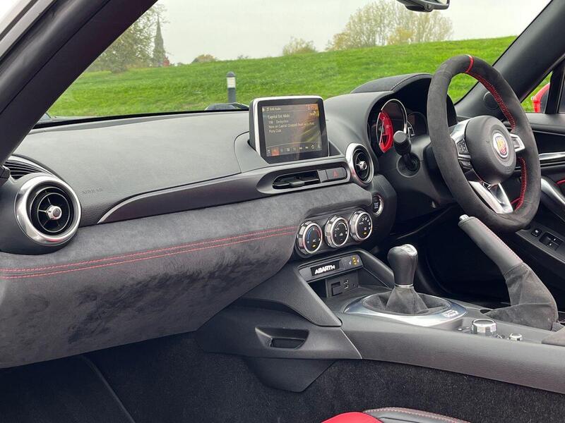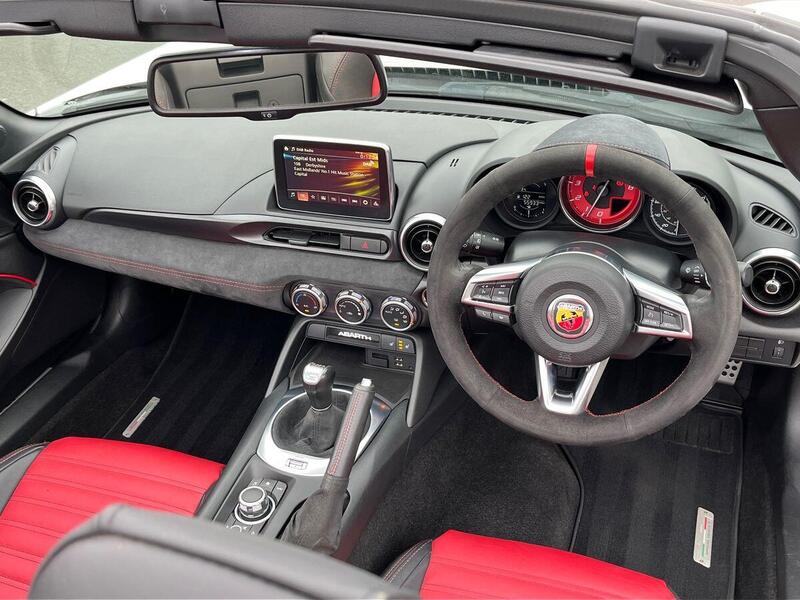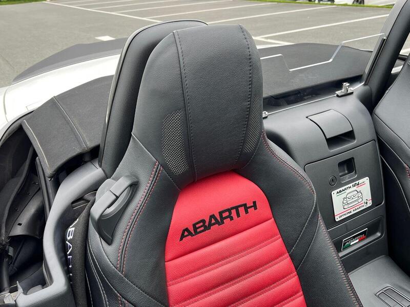 12V Power Outlet, 17in Alloy Wheels - Corsa, 2 USB and 1 AUX Ports, 7in Touchscreen with Multimedia Control, A-Pillar and Roll Bar in Forgiato Grey, ABS - Anti-Lock Braking System, Abarth Mechanical Limited Slip Differential, Abarth Record Monza Exhaust System, Active Head Restraints, Active Pedestrian Protection, Adjustable Drivers and Passengers Seats, Aerodynamic Abarth Kit, Aha by Harman and Stitcher Internet Radio Apps Internet Wi-Fi, Air Conditioning, Airbags - Driver, Airbags - Front Side, Airbags - Passenger, Alcantara Wrapped Instrument Cluster Hood, Alcantara Wrapped Instrument Panel Bezel, Aluminium Racing Pedals, Bi-Function Halogen Projector Headlights, Black Convertible Roof with Acoustic Headliner, Black Side Skirts, Bluetooth, Child Seat Anchor System Latch Ready, Cruise Control, Daytime Running Lights, Digital Audio Broadcast - DAB, Dimpled Leather Bound Gear Knob, ESP - Electronic Stability Programme, Electric Power Steering, Fix&Go Kit, Floor Mats - Front, Front Fog Lights, Front Passenger Seat Belt Alert, Headlight Levelling System, Headlight Off Time Delay, Heated Front Seats, Illuminated Entry, Immobiliser, Keyless Go Push Button Start, LED Rear Lights, Manual Rearview Mirror, Matt Black Instrument Panel Bezel, Motorized Pretensioning Seatbelts, Occupant Detection System, Passenger Airbag On-Off Switch, Passenger Side Sun Visor with Mirror, Performance Steering Wheel, Power Heated Mirrors, Power Windows, Premium Security Alarm, Radio AM-FM - MP3 Player, Rear Fog Lights, Remote Control Key Fob, Side Repeater Lens, Soft Top with Inner Liner Soundproofing, Soft Touch Instrument Panel Surround, Speakers x4, Sport Instrument Cluster, Sport Mode, Sport Suspension Abarth by Bilstein, Steering Wheel - Audio Controls, Tilt Steering Column, Trip Computer, Tyre Pressure Monitor System, Variable Intermittent Windshield Wipers, Leather - Red/Black