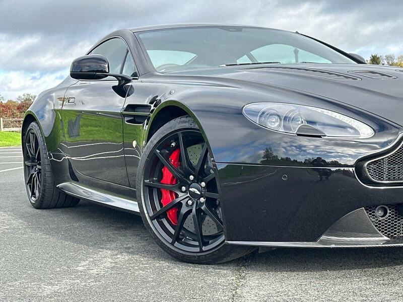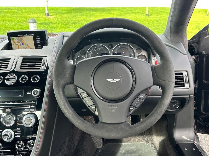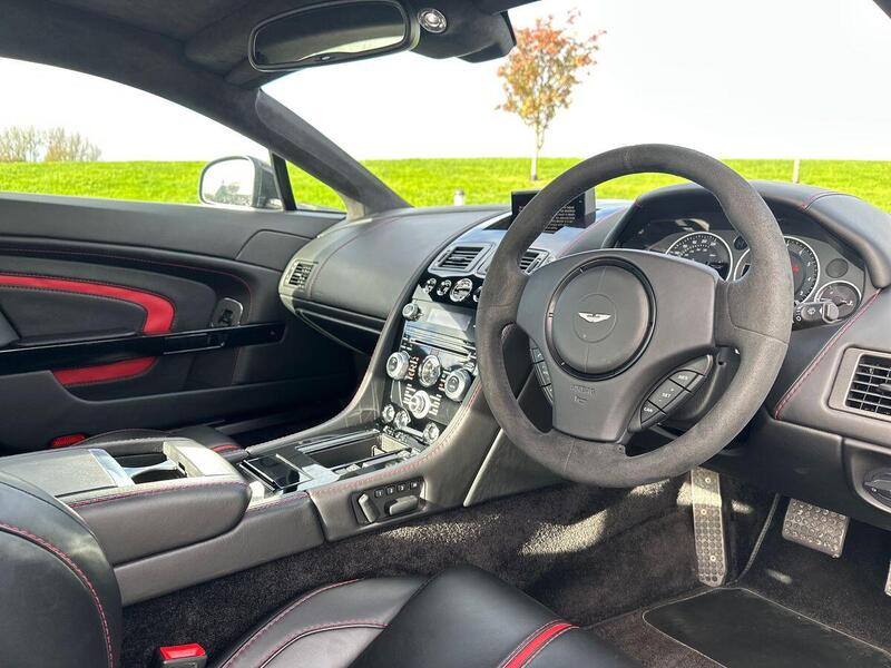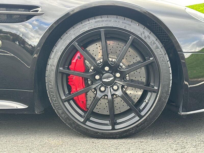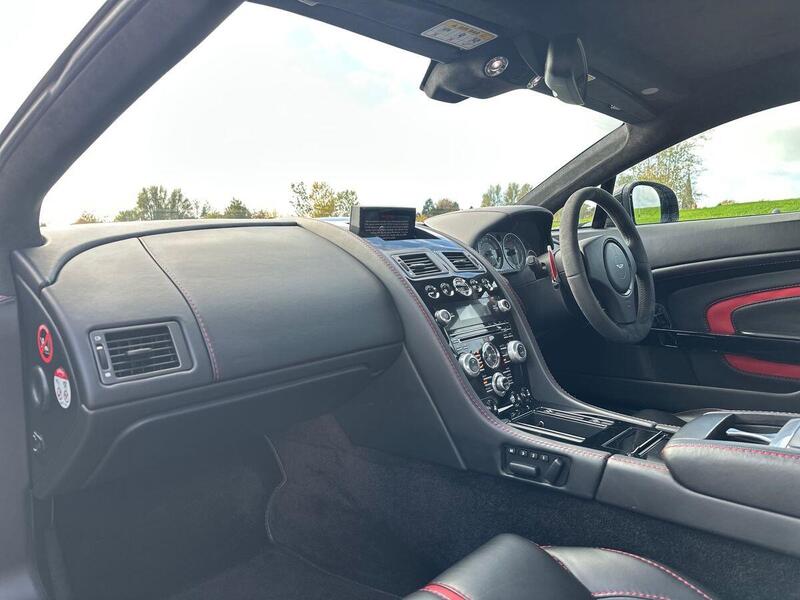 160 W Aston Martin Audio System, 19in Alloy Wheels - 10 Spoke Graphite Diamond Turned with Corsa Tyres, 3.5mm Auxiliary Audio Input Socket, ABS - Anti Lock Braking System, Airbag - Dual-Stage Driver, Airbag - Dual-Stage Front Passenger, Airbag - Front Occupant Side, Alarm Upgrade - Volumetric and Tilt Sensors, Aluminium-Magnesium Alloy and Composite and Steel Body, Aston Martin Tracking by Cobra, Auto Dimming Interior Rear View Mirror, Automatic Temperature Control, Bi-Xenon Headlights, Bluetooth Telephone Preparation, Body Coloured Door Mirrors - Heated and Electrically Retractable, Brake Calipers - Black, Bright Tailpipe Finisher, Carbon Fibre Splitter and Diffuser, Clear Rear Lights, Colour Keyed Paddleshift Inserts, Contrast Stitching, Cruise Control, DSC - Dynamic Stability Control with Track Mode, EBA - Emergency Brake Assist, EBD - Electronic Brakeforce Distribution, Electrically Adjustable Sports Seats, Embroidered Vantage S Carpet Logo, Embroidered Vantage S Seat Logo, Exterior Mirrors - Three Positions, Extruded Aluminium Bonded VH Body Structure, Extruded Aluminium Door Side-Impact Beams, Facia Trim - Piano Black, Front Electric Windows, Front Grille Carbon Fibre, Glass ECU, Glass Switches, HBA - Hydraulic Brake Assist, HSA - Hill Start Assist, Halogen Projector Headlights-Main Beam, Headlights Power Wash, Heated Rear Screen, High Intensity Discharge Headlights-Dipped Beam, Immobiliser, Integrated Apple iPod Connector, LED Map Reading Lights, Lamy Pen and Pen Holder, Machined Black 'S' Theme Tread Plates, Memory Seats, OEL - Organic Electroluminescent Displays, PTC - Positive Torque Control, Piano Black Centre Console Finish and Iridium Silver Surround, Piano Black Pack, Power Assisted Steering, Protective Tape, Rear Parking Sensors, Remote Control Boot Release, Remote-Control Central Door Locking, Satellite Navigation System, Seatbelts - Warm Charcoal, Six-CD Autochanger, Steering Column Tilt and Reach Adjustment, Steering Wheel - Black Alcantara, TC - Traction Control, TMC - Traffic Messaging Channel, Titanium Silver Meshes, Trip Computer, Tyre Pressure Monitoring System, Tyre Repair Kit, USB Connector, Waveform Audio Format/Windows Media Player and MPEG Audio File Compatibility, Leather Colour Contemporary - Obsidian Black, Aston Martin 700w Premium Audio with Dolby Logic II, Brake Calipers - Red, Black Textured Tailpipe Finisher, Front Grille Carbon and Body Colour, Front Parking Sensors, Reversing Camera, Black Pedals, Headrest Embroidery - Aston Martin Wings, Heated Front Seats, Carbon Side Strakes, Lightweight Wheels - Satin Black with Corsa Tyres