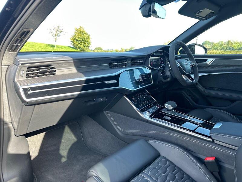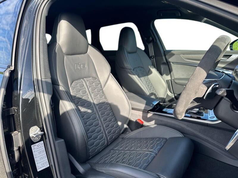 22in Alloy Wheels - Black Gloss Turned Finish, 4-Way Electric Lumbar Support, ABS - Anti-Lock Braking System, AMI - Audi Music Interface, Air Quality Pack, Airbags - Driver, Airbags - Front Passenger, Anti-Theft Alarm with Tow-Away Protection, Audi Beam, Audi Connect (3 Year Subscription From New), Audi Connect Safety and Service - e-call, Audi Connect with Amazon Alexa Integration, Audi Drive Select with Efficiency, Audi Pre-Sense Front, Audi Smartphone Interface, Audi Sound System, Audi Virtual Cockpit with RS Specific Design and 12.3in Display, Auto Dimming and Frameless Rear View Mirror, Black Mirror Housings, Bluetooth Interface, Camera Based Traffic Sign Recognition, Carbon Black Styling Pack, Cloth Headlining in Black, Cruise Control System with Speed Limiter, DAB Digital Radio, Deluxe 4-Zone Automatic Climate Control, Direct Tyre Pressure Monitoring System, Door Mirrors - Electrically Folding - Adjustable and Heated with Integrated LED Side Indicators and Kerb-view Function for Passenger Side, Dynamic All-Wheel Steering, Electric Steering Column Adjustment, Electric Windows - Front and Rear, Electrically Adjustable Front Seats with Memory Function for Drivers Side, Electromechanical Parking Brake, Extended LED Interior Lighting Package - Multi-Coloured, Extended Pedestrian Protection Measures, First Aid Kit and Warning Triangle, Front Centre Armrest, Front and Rear Side Airbags with Head Airbag System, HD Matrix LED Headlamps with Audi Laser Light with Dynamic Light Design and Dynamic Turn Signal, Headlight Washers, Heated Front Seats, ISOFIX Child Seat Mounting and Top Tether - Front Passenger Airbag Deactivation, Illuminated Door Sill Trims with RS Logo, Inlays - Carbon Twill, Keyless Go, LED Rear Combination Lamps with Dynamic Light Design and Dynamic Turn Signal, Lane Departure Warning, Leatherette Upper Instrument Panel and Door Shoulders, MMI Navigation with MMI Touch, Operating Buttons in Gloss Black, Pedals and Footrest - Stainless Steel, Power Operated Tailgate, Privacy Glass, RS Design Package - Grey, RS Rear Spoiler in Body Colour, RS Specific Bumpers - Front Bumper Air Inlets on Both Sides, RS Steel Brakes with Black Calipers, RS-Air Suspension - 4 Corner - with Electronic Shock Absorption Control - Sports Version, Radiator Protective Grille in Honeycomb Structure - Gloss Black with Large Front Air Inlets and Rear Diffuser in Gloss Black, Rear-View Camera, Seat Ventilation for Front Seats, Storage Package, Towbar Preparation, Voice Control System, Wheel Arch Extensions - Front and Rear, quattro with Sports Differential, RS Steel Brakes with Brake Calipers in Red Gloss
