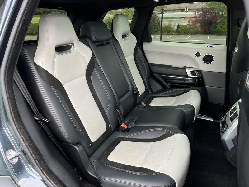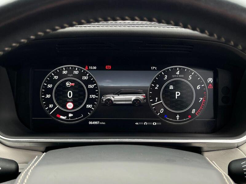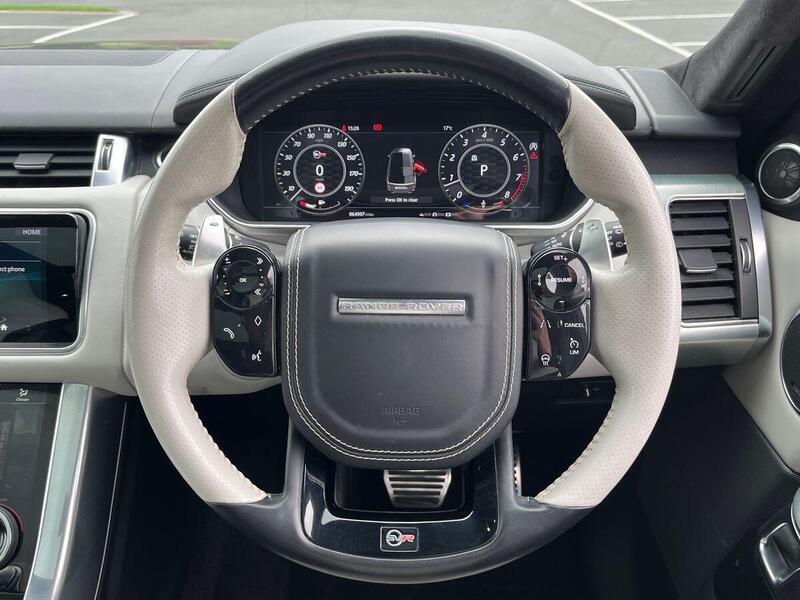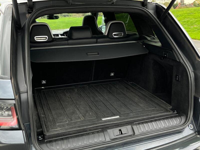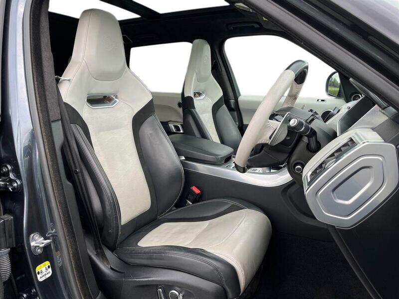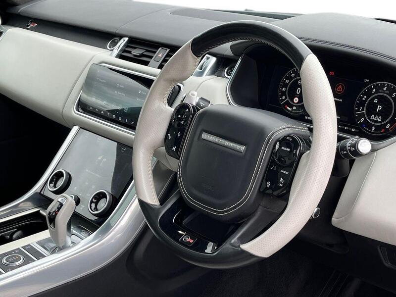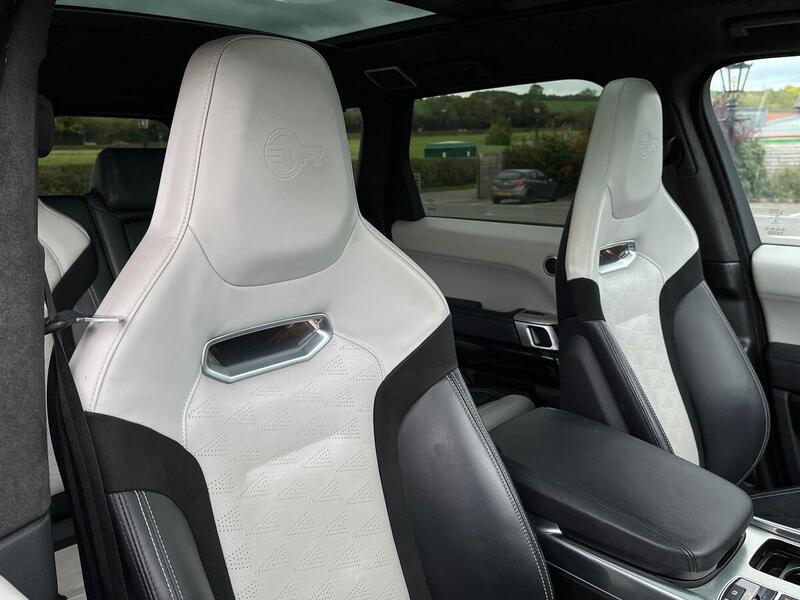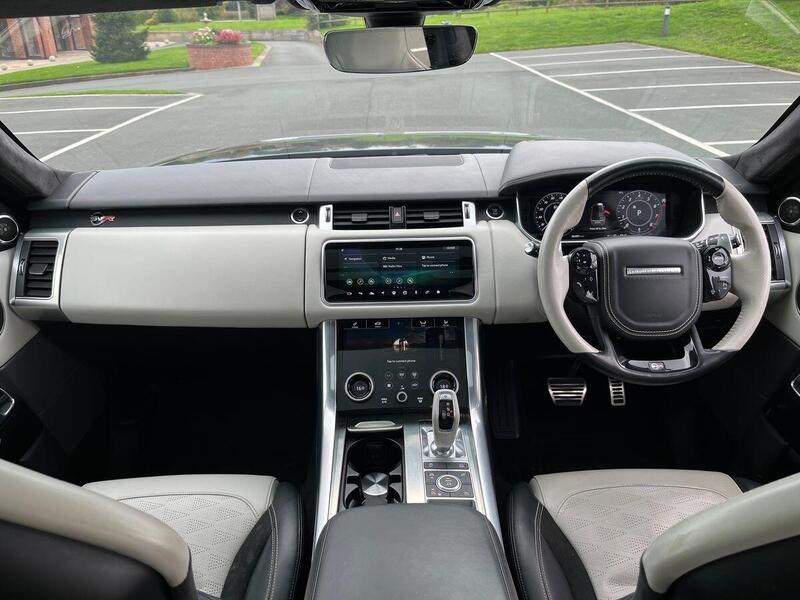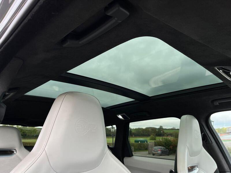 12V Power Socket, 21in Alloy Wheels - 5 Split Spoke Style 5091 with Satin Polish Finish, 360 Degree Parking Aid, 60-40 Folding Rear Seats, ABS - Anti Lock Braking System, ATPC - All Terrain Progress Control, Active Exhaust Control, Adaptive Cruise Control with Stop and Go, Adaptive Dynamics, All Terrain lnfo Centre, Aluminium Gearshift Paddles, Android Auto, Apple CarPlay, Auto-Dimming Interior Mirror, Auto-Dimming Power Fold - Heated Door Mirrors with Memory and Approach Lights, Automatic Headlights, Blind Spot Monitor, Bluetooth Connectivity, Body Coloured Carbon Fibre Bonnet, Body Coloured Side Sills and Bumper Corners, Brake Pre-fill, Bright Metal Pedals, CBC - Cornering Brake Control, Centre Console with Armrest, Clear Exit Monitor, Configurable Dynamics, Configurable Interior Mood Lighting, Contrast Painted Roof - Narvik Black, Customer Configurable Autolock, Customer Configurable Single Point Entry, DAB - Digital Audio Broadcast, DSC - Dynamic Stability Control, Driver Condition Monitor, Driver and Passenger Airbags, EBA - Emergency Brake Assist, EBD - Electronic Brake-Force Distribution, EPAS - Electronic Power Assisted Steering, EPB - Electronic Park Brake, ETC - Electronic Traction Control, Electric Windows with One-Touch Open-Close and Anti-Trap, Electrically Adjustable Steering Column, Electronic Active Differential with Torque Vectoring by Braking, Emergency Braking, Extended Leather Upgrade, Extended Satin Brushed Aluminium Trim Finisher, Follow Me Home Lighting, Front Door Storage Space, Front and Rear Cupholders, Front and Rear Grab Handles, Front and Rear Recovery Eyes, Glovebox - Lockable, Gradient Acceleration Control - GAC, Gradient Release Control, HDC - Hill Descent Control, Heated Front and Rear Seats, Heated Rear Window, Heated Steering Wheel, Heated Windscreen with Heated Washer Jets, High Speed Emergency Braking, Hill Launch Assist, ISOFIX Child Seat Anchor Points, Illuminated Metal Treadplates with Brand-Name Script, InControl Apps, InControl Protect, Intrusion Sensor, Keyless Entry, Laminated Acoustic Front and Toughened Rear Side Glass, Lane Departure Warning, Lightweight Exhaust System, Loadspace Compartment Light, Loadspace Cover, Loadspace Mounting Provisions, Locking Wheel Nuts, Low Traction Launch, Meridian Surround Sound System 825W, Navigation Pro, Non Smokers Pack, Pixel LED Headlights with Signature DRL, Power Operated Child Locks, Powered Gesture Tailgate - Boot Lid, Premium Carpet Mats, Pro Services and Wi-Fi Hotspot, Push Button Start, RSC - Roll Stability Control, Rain Sensing Windscreen Wipers, Rear Bumper with Integrated Quad Exhaust Finishers, Rear Centre Armrest, Rear Fog Lights, Rear Traffic Monitor, Rear View Camera, Red SV Painted Brake Calipers, Remote Premium, SVR Badge, SVR Engine Cover, SVR Leather Steering Wheel, SVR Performance Seats, Seat Belt Pre-Tensioners, Secure Tracker, Side Repeater Indicators in Mirror, Sports Suspension with Dynamic Response, Standard Roof, Sunvisors with Vanity Mirrors, Switchable Sports Exhaust, TPMS - Tyre Pressure Monitoring System, TSA - Trailer Stability Assist, Terrain Response 2 with Dynamic Program, Three-Zone Climate Control, Touch Pro Duo, Traffic Sign Recognition and Adaptive Speed Limiter, Twin Speed Transfer Box - High-Low Range, Tyre Repair System, Head Up Display, Pixel-laser LED Headlights with Signature DRL, Eiger Grey, Sliding Panoramic Roof Including Powered Blind, Front Centre Console Refrigerator Compartment, Perforated Windsor Leather with Suedecloth Inserts - Ebony- Cirrus, 22in Alloy Wheels - 5 Split Spoke Style 5083 with Gloss Black Finish, Reduced Section Alloy Spare Wheel, Climate Comfort Pack, Headlining - Morzine - Ebony, Heated and Cooled Front Seats with Heated Rear Seats