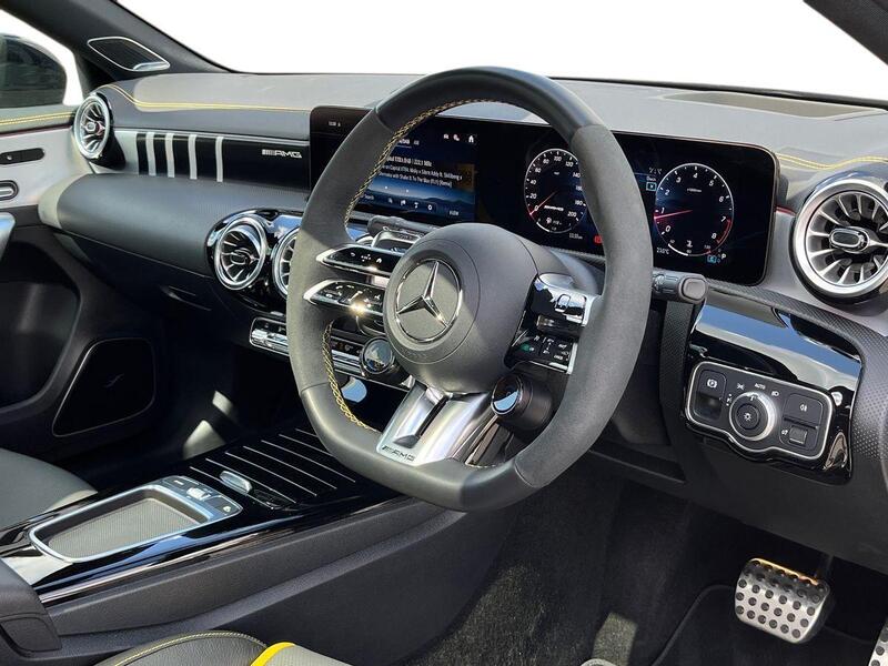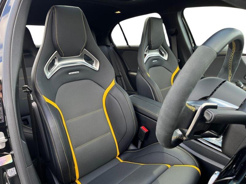 Acorn Specialist Cars are pleased to present this Mercedes-Benz AMG A45, finished in Night Black with the Leather Package. The interior is Two Tone Leather in Titanium Grey Pearl and Black with Yellow Stitching. Paired with 19in AMG Cross Spoke Alloy Wheels in Matt Black and Red Brake Callipers with AMG Lettering. This A45 has a lovely specification range including the Driving Assistance Package which includes Adaptive Cruise Control, Lane Assist, Blind Spot and Collision Protection and Emergency Stop Assist. It also has a Panoramic Glass Sunroof, Head-Up Display, Automatic Headlight Activation, Heated Front Seats with Memory Package, Park Assist and Burmester Surround Sound System. As expected, this car has Full Mercedes Service History with the last being carried out on 05/08/2025 on 7320 miles and has a Valid MOT until 31/08/2027. For further information, or to request a personalised 360-degree video presentation on this Mercedes Benz AMG A45, then please contact us on 01785 292196 or 07919 238119 and we will be on hand to help with any queries you may have.