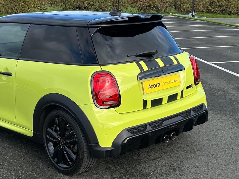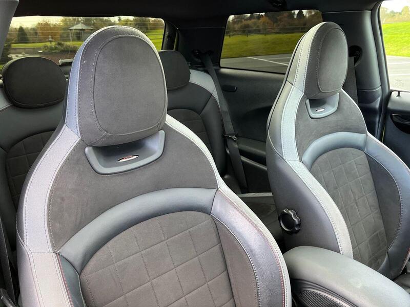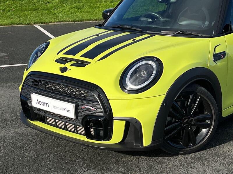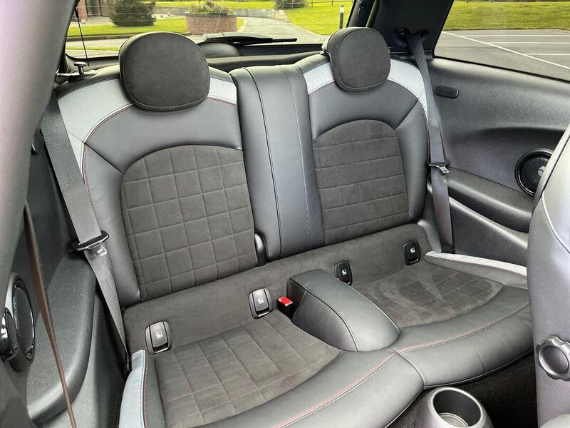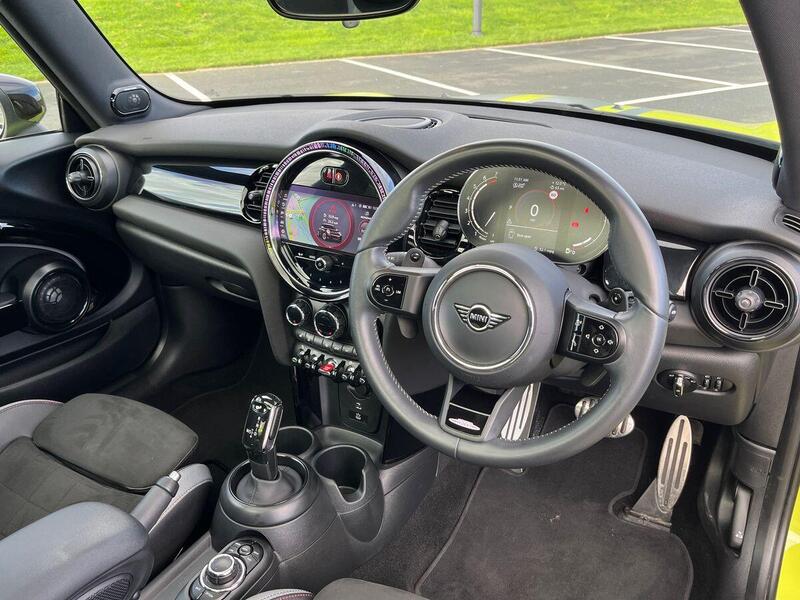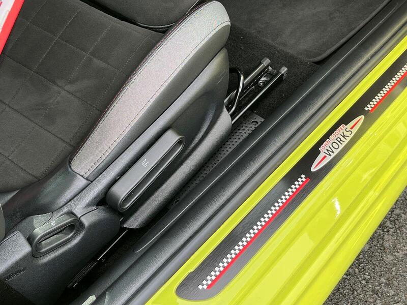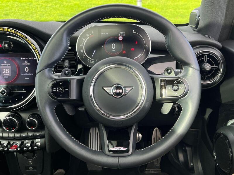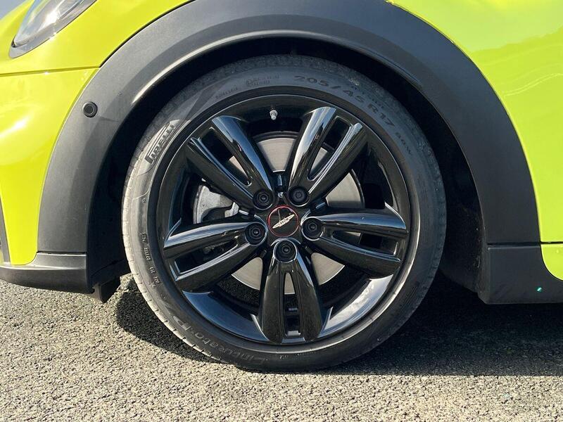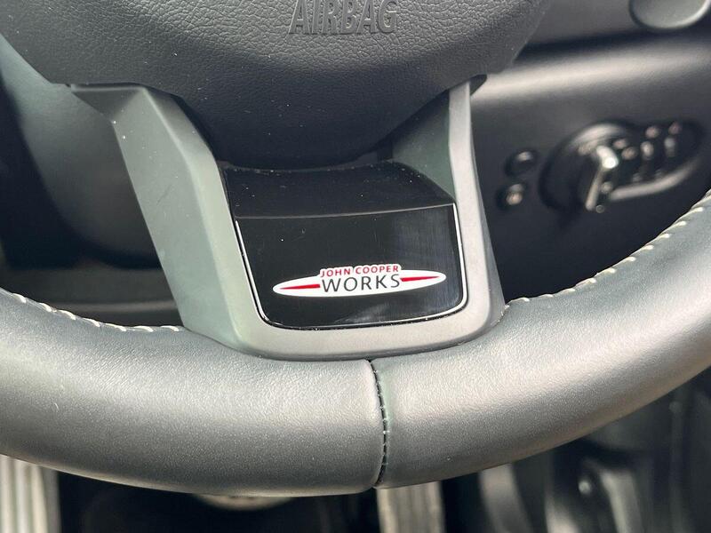 12V Socket in Centre Console, 17in Alloy Wheels - John Cooper Works Track Spoke - Black, 3 Point Seatbelts on all Seats, 4 Lashing Eyes in Luggage Compartment, 4 Speakers - in Front Door Trims and Underneath Front Seats, 8.8in Touchscreen with LED Ring, Airbags, Alarm System, Anti-Lock Braking System - ABS, Apple Carplay, Automatic Headlight Activation Switch, Bluetooth for Compatible Mobile Phone - with Audio Streaming, Bonnet Scoop, Carbon Black Colour Line - Knee Roll and Door Armrests, Chrome Highlights, Cruise Control with Brake Function, Cup Holders, Digital Dash, Door Sill Strips - Metal with Cooper S, Door Storage Compartments, Dynamic Brake Lights, Dynamic Stability Control - DSC, Electric Windows, Electro-Mechanical Steering with Speed Dependant Steering Assistance, Electronic Gear Shifter, Electronic Vehicle Immobiliser, Exhaust Tailpipe - Double - Central with Chrome Finishers, FM Tuner and DAB Digital Radio, Flexible Car Sharing Preparation, Floor Mats - Velour, Foldable Rear Seats 60-40, Front and Rear ISOFIX - including Front Passenger Airbag Deactivation, Glove Compartment, Headliner - Anthracite, Heated Rear Window, Heated Windscreen Washer Jets, Instrument Cluster, Intelligent Adaptive Suspension, Interior Lighting, Interior Trim - Piano Black, John Cooper Works Aerodynamic Kit, John Cooper Works Roof Spoiler, John Cooper Works Sport Seats, LED Headlights with Closed Ring as Daytime Driving Lights, LED Reading Lights - Vanity Mirror Lights - Front Footwell Lights - Spotlights on Front Seats, Leatherette Gearshift Lever and Handbrake Gaiters, MINI E-Call, Mechanical Seat Adjustment, Model Logo Cooper S on Right of Tailgate, Multifunction Controls for Steering Wheel, On-Board Computer, Performance Control, Piano Black Exterior Trim, Premium Pack, Radiator Grille - Chrome Border with Honeycomb Structure - including S Badge, Rain Sensor Window Wipers, Rear Fog Light, Rear LED Lights with Union Jack Design, Rear Window Wiper, Roof and Mirror Caps - Black, Side Scuttle Panels with Integrated Indicators, Start-Stop Toggle including Keyless Go, Steering Column Height and Length Adjustment, Steering Wheel Paddles, Storage - Pockets on Back of Front Seats, Sun Visor with Vanity Mirrors, Sun-Heat Protection Glass, Teleservices, Tool Kit, Two-Tone Horn, Tyre Pressure Monitoring System, Walknappa Leather Steering Wheel with Grey Seam, White Indicator Lenses, Premium PLUS Pack, Darkened Rear Glass, Dinamica-Leather - Carbon Black