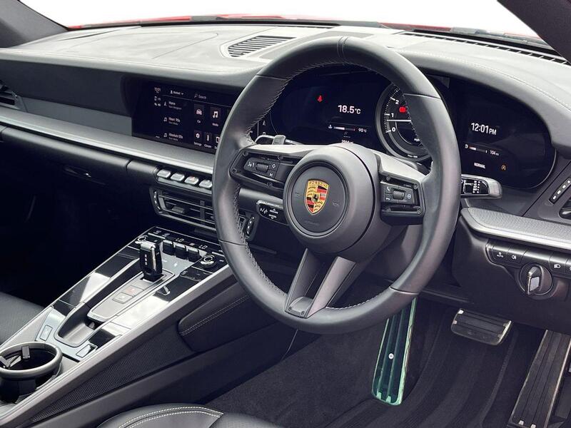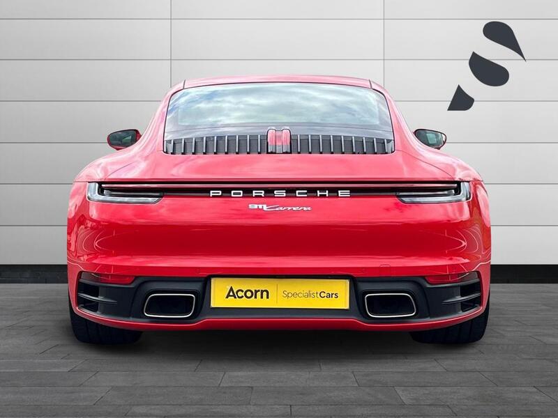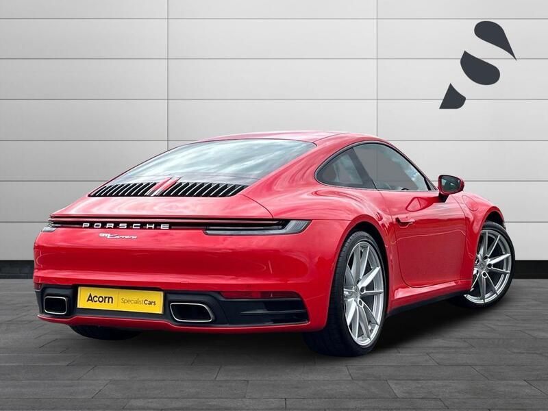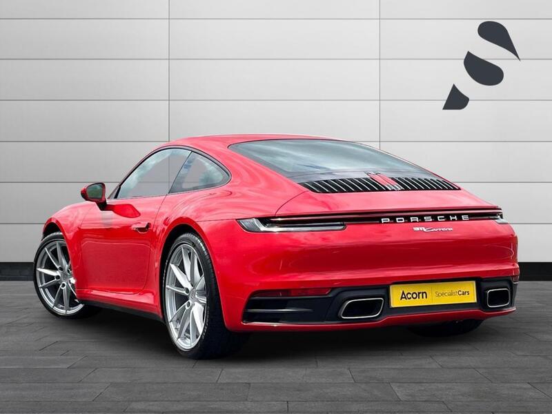 Acorn Specialist Cars are pleased to present this Porsche 911 Carrera, finished in Guards Red with Black Leather and Crayon Stitching Interior as well as the Guards Red Seatbelts, paired with the 20in Front and 21in Rear Carrera S Alloys in Silver. This stunning car comes with a brilliant specification range to match, with the 4 Way Electrical Sports Seats Plus, the GT Sport Leather Steering Wheel which is Heated, Park Assist Front and Rear with a Reversing Camera, Automatically Dimming Mirrors with Integrated Rain Sensors, Storage Package and Power Steering Plus. Other features include Cruise Control, Front Heated Seats, Sound Package Plus and the Twin Exhaust System in Stainless Steel. For further information, or to request a personalised 360-degree video presentation on this Porsche 911 Carrera, then please contact us on 01785 292196 or 07919 238119 and we will be on hand to help with any queries you may have.