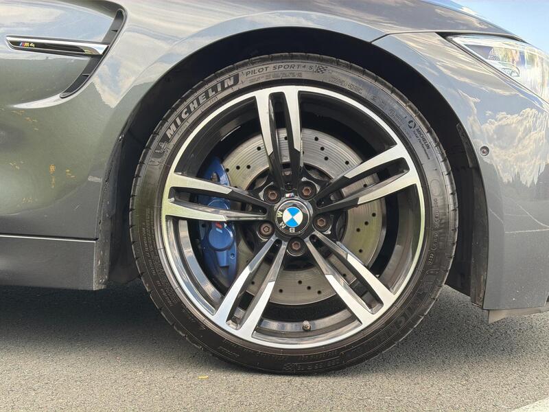 Acorn Specialist Cars are pleased to present this BMW M4 F82, finished in the stunning Dark Grey Metallic with Full Merino Leather in Sakhir Orange with Black Interior, also featuring the Carbon Fibre with Black Chrome Highlight. Paired with the 19in Alloy Wheels in the Style 437M in Jet Black, which complete the car perfectly.