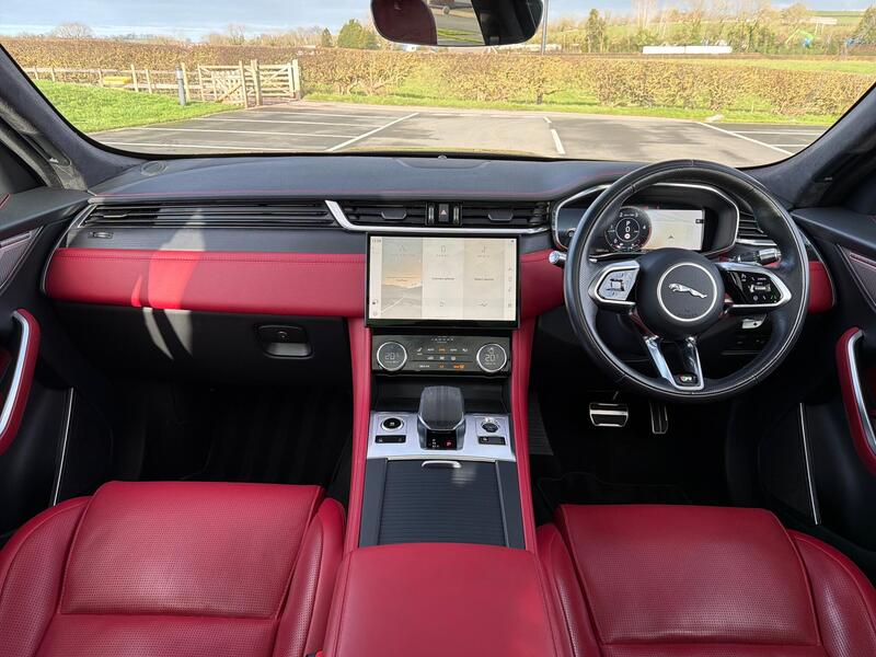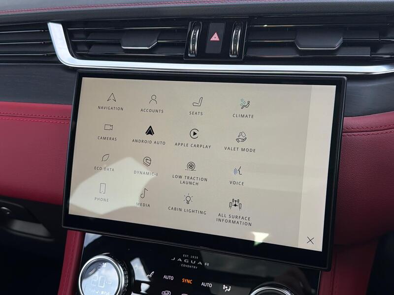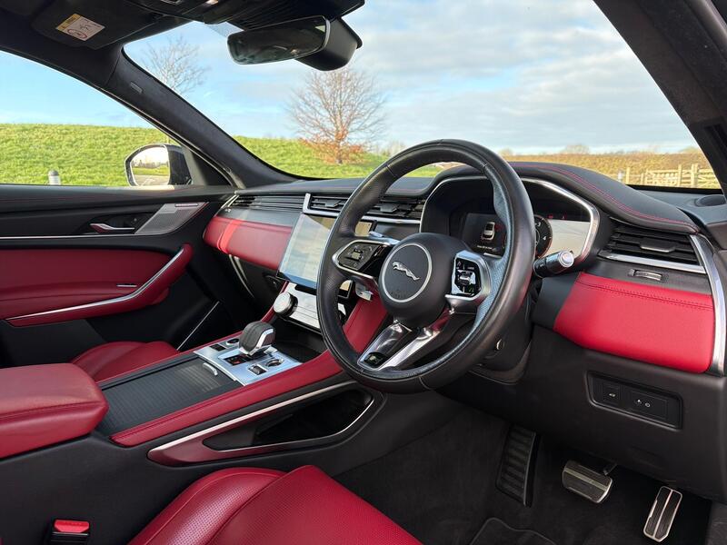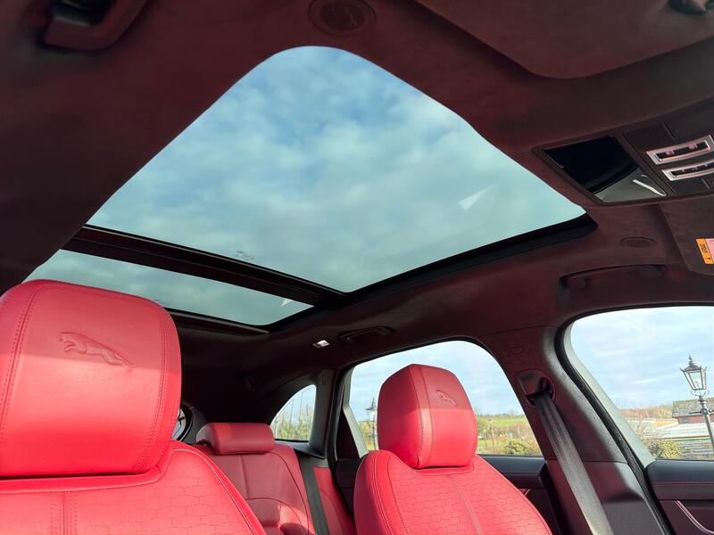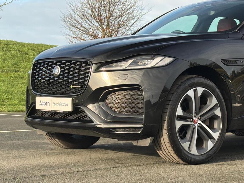 Acorn Specialist Cars are pleased to present this Jaguar F-Pace, finished in Ultimate Black Metallic with the Perforated Windsor Leather Sports Seats in Mars Red, Ebony Suedecloth Headlining and Satin Charcoal Ash Veneer interior. Paired with the 21in Dark Grey Alloy Wheels in the Style 5104, you have a brilliant looking car!
