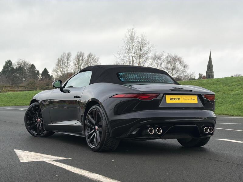 Acorn Specialist Cars are pleased to present this Jaguar F-Type, finished in Santorini Black with the Windsor Leather Performance Seats in Ebony with the Light Oyster Stitching. Paired with the 20in Alloy Wheels in the Style 5039 in a Gloss Black Finish and Black Brake Callipers.