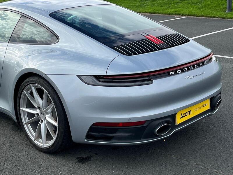 Acorn Specialist Cars are pleased to present this Porsche 911 Carrera 4, finished in the stunning Dolomite Silver Metallic with Full Black Leather Interior including the Dashboard and Door Trim Package. Paired with the staggered 20in Front and 21in Rear Alloy Wheels in the Carrera S Style and Black with Porsche Lettering Brake Callipers, you have a brilliant looking car.