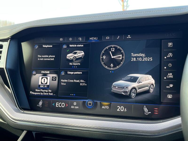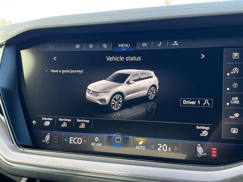 12V Socket x3, 20in Alloy Wheels - Nevada, 4MOTION Active Control, ABS Plus - Anti-Lock Braking System with EBD - Electronic Brake-Pressure Distribution and HBA-Hydraulic Brake Assist, Active Bonnet, Adaptive Cruise Control - Including Front Assist - Radar Sensor Controlled Distance Monitoring System, Air Vents in B-Pillar, Alarm with Interior Protection - Back up Horn and Towing Protection, Ambient Lighting - White, Automatic Coming Home Lighting Function, Automatic Dimming Interior Rear View Mirror, Automatic Headlight Control, Automatic Post-Collision Braking System, Body Coloured Door Handles, Body Coloured Door Mirrors with Integrated Indicators, Body Coloured Front and Rear Bumpers, Body Coloured Wheel Arch Protection, C Signature Gloss Black Front Air Intake, Car Net - Guide and Inform (3 Year Subscription From New), Car-Net App Connect, Car-Net Security and Service including eCall, Carpet Mats - Front and Rear, Central Locking with Remote Control, Child Security Locks for Front and Rear Doors - Activated from Drivers and Front Passengers Door, Chrome Side Window Surrounds, Chrome Trimmed Upper and Lower Grille Louvres, Climate Control - 4Zone, Coat Hook on B Pillar x2, Cup Holders Front x2 Centre Console - Illuminated, Curtain Airbag System for Front and Rear Seats with Side Impact Airbags for Front Seats, Discover Premium Infotainment System, Driver Alert System - Audible and Visual, Drivers and Front Passengers Airbags with Front Passenger Airbag Deactivation Switch, Drivers and Front Passengers Double Sun Visors with Illuminated Vanity Mirrors, Drivers and Passengers Safety Optimised Head Restraints - 4 Way Adjustable, Driving Profile Selection, Dusk Sensor, ESC - Electronic Stability Control Including EDL - Electronic Differential Lock - ASR - Traction Control and Trailer Stabilisation Function, Electric Tailgate with Power Cover, Electric Windows - Front and Rear, Electrically Heated - Adjustable and Foldable Door Mirrors with Auto Dimming with Puddle Lighting, Electronic Engine Immobiliser, Electronic Parking Brake with Auto Hold Function, First Aid Kit and Warning Triangle, Front Centre Armrest with Storage Compartment - LED Lights, Front Three-Point Seat Belts with Height Adjustment and Seat Belt Tensioners, Full LED Headlights, Full LED Tail Lights, Galvanised Body, Glovebox - Illuminated and Cooled, Heat Insulating Glass In Side and Rear Windows, Heated Windscreen Washer Jets, Height and Reach Adjustable Steering Column, High Beam Assist, High Gloss Black Decorative Inserts, Hill Descent Assist, Hill Start Assist, ISOFIX Child Seat Preparation For Two Rear Child Seats, Innovision Cockpit with Volkswagen Digital Cockpit, Keyless Entry, Keyless Start, LED Luggage Compartment Lights x2 - Left and Right, LED Rear Fog Light, LED Rear Number Plate Lights, LED White Interior Lighting, Lane Assist, Leather Trimmed Gear Knob with Gloss Black Inlays and Aluminium Trim, Load Lashing Points x4 in Luggage Compartment, Load Through Provisions, Luggage Compartment Cover - Electrically Operated, Luggage Compartment Cover with Convenience Opening, Matt Black Centre Console with Silver Decorative Inlay, Memory Pack, Multifunction Camera, Multifunction Computer with 7in Colour Screen in Instrument Cluster, Multifunction Heated R-Line Steering Wheel with Paddle Shift - Leather Trimmed, One Touch Indicator, Park Assist and Rear View Camera, Parking Sensors - Ultrasonic Front and Rear with Optical and Audible, Poor Weather Light, Power Assisted Steering - Speed Sensitive, R-Line Body Styling Kit, Rain Sensor, Rear Centre Armrest - Folding with Cup Holder, Rear Centre Armrest - Folding with Cup Holders x2, Rear Diffuser - Black Grained with Chrome Trapezoid Exhaust Tailpipes - Left and Right, Rear Diffuser in Gloss Black, Roof Rails - Silver Anodised, Seats - Drivers Memory Settings, Shopping Bag Hooks in Luggage Compartment x2, Silver Wave Design Aluminium Decorative Inlays, Soul Black Headliner, Sports Suspension, Stainless Steel Load Sill Protector, Stainless Steel Pedals, Storage Compartment in Dashboard Centre with Cover and USB Connectivity, Storage Compartment in Drivers Door for 1.5 Litre Bottle, Storage Compartment in Passengers Door for 1.0 Litre Bottle, Tailgate - Remote Unlocking, Temporary Steel Space Saver Wheel, Three Point Seat Belts in Rear - Including Seat Belt Pretensioner, Three Rear 3-Point Seat Belts, Three Rear Head Restraints, Tinted Glass - Heat Insulating Rear 80% Light Absorbing From B Pillar Backwards, Traffic Sign Recognition, Two-Tone Horn, Tyre Pressure Loss Indicator, Unique R-Line Badging, Unique R-Line Stainless Steel Door Sill Protectors - Front, Warning Buzzer and Light for Front and Rear Seat Belts if Unfastened, Park Assist with Area View Camera, 21in Alloy Wheels - Suzuka Dark Graphite, Panoramic Sunroof, IQ Light - LED Premium Matrix Beam Headlights with Intelligent Light Modes - Dynamic Light Assist - Dynamic Indicators and Dynamic Rear Tail Lights, Air Suspension and Rear Axle Steering, Towbar